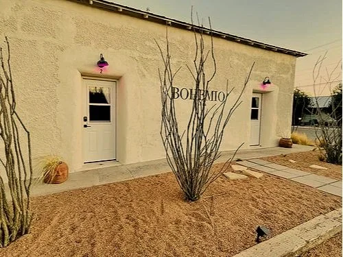 Tucked just a few blocks from the Hotel Saint George, BOHEMIO’s Rebel Lodge isn’t your average getaway. It’s the kind of place where the road calls, and you’re free to follow it. This bespoke adobe retreat is a celebration of Marfa’s wild soul, wrapped in the warmth of thick walls and a whole lot of personality. Inside, you’ll find three units (four bedrooms) that pulse with creative energy; the Beat Suite, the Mod Quad, and the Howl at the Moon room, all with room to spare for your crew of dreamers, rebels, and wanderers.
