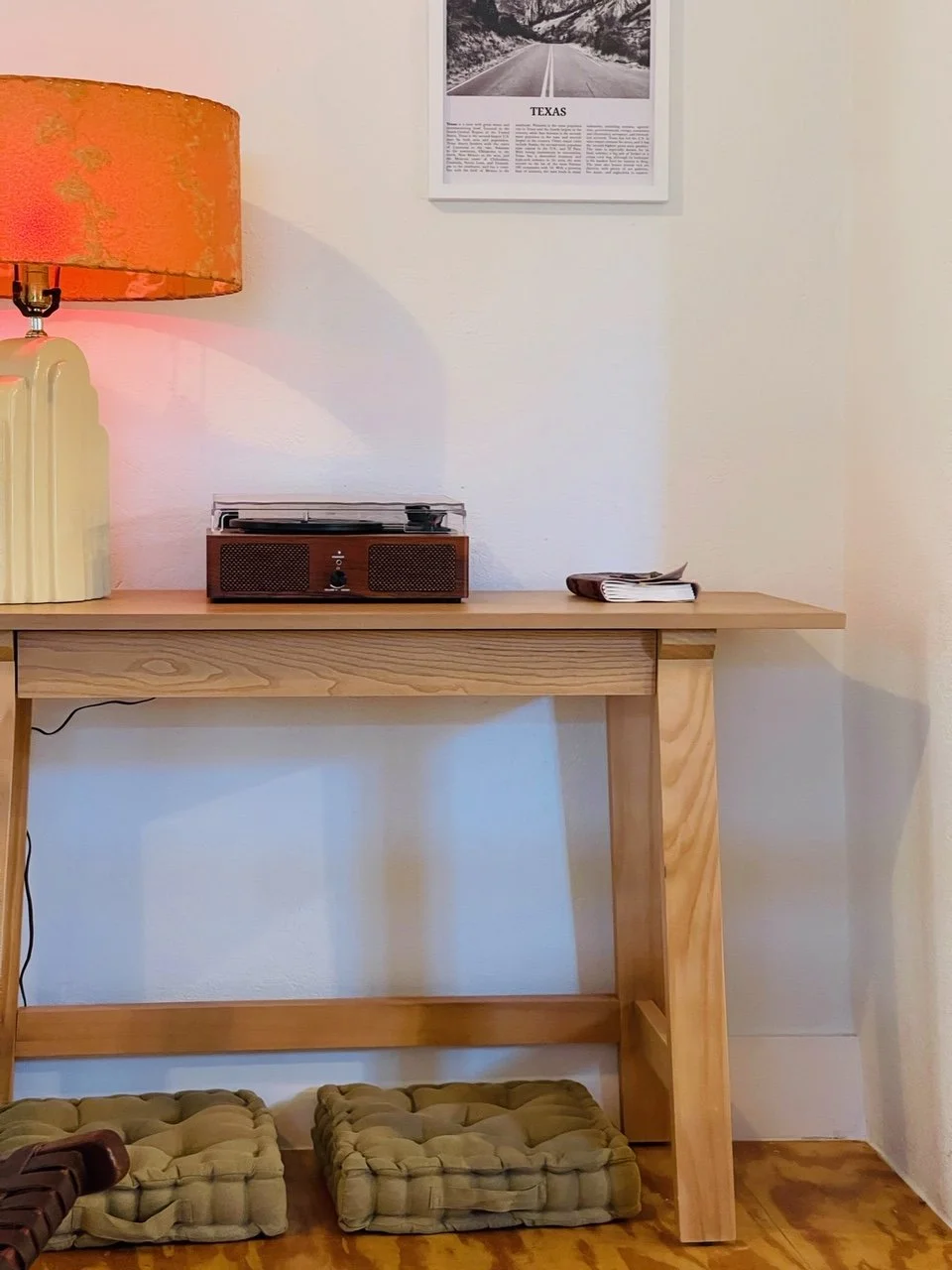 The Rebel Lodge living room is a shared space for travelers to stretch their legs, enjoy a glass of wine, and play some vinyl.