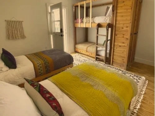 This rustic & fun, large twin & trundle, plus two-twin bedroom is one of three various accommodations located within BOHEMIO’s “Rebel” Lodge. The newly renovated bathroom is shared with one other bedroom and located just a few steps away. Includes access to Rebel Lodge amenities.